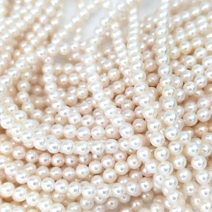 Colour: White with faint pink tone (some very slight variations from pearl-to-pearl when viewed close-up which adds to their authenticity).