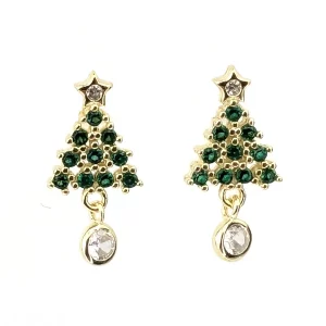 These fun Christmas tree studs will add the perfect finishing touch to that Christmas party outfit! Like all of our earrings, they are crafted from sterling silver with tiny glistening green CZs, with a larger CZ crystal dropped underneath for extra sparkle. The earrings come complete with sterling silver keepers and a choice of either silver or gold metal finishes. Each earring measures approximately 14mm tall.