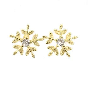 These fun snowflake studs will add the perfect finishing touch to that Christmas party Ice Queen outfit! Like all of our earrings, they are crafted from sterling silver and tiny glistening CZs, with a larger CZ crystal in the centre. The earrings come complete with sterling silver keepers and a choice of either silver or gold metal finishes. Each earring measures approximately 11mm in diameter.