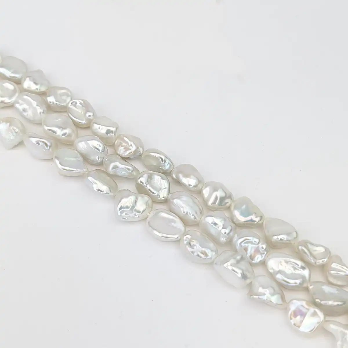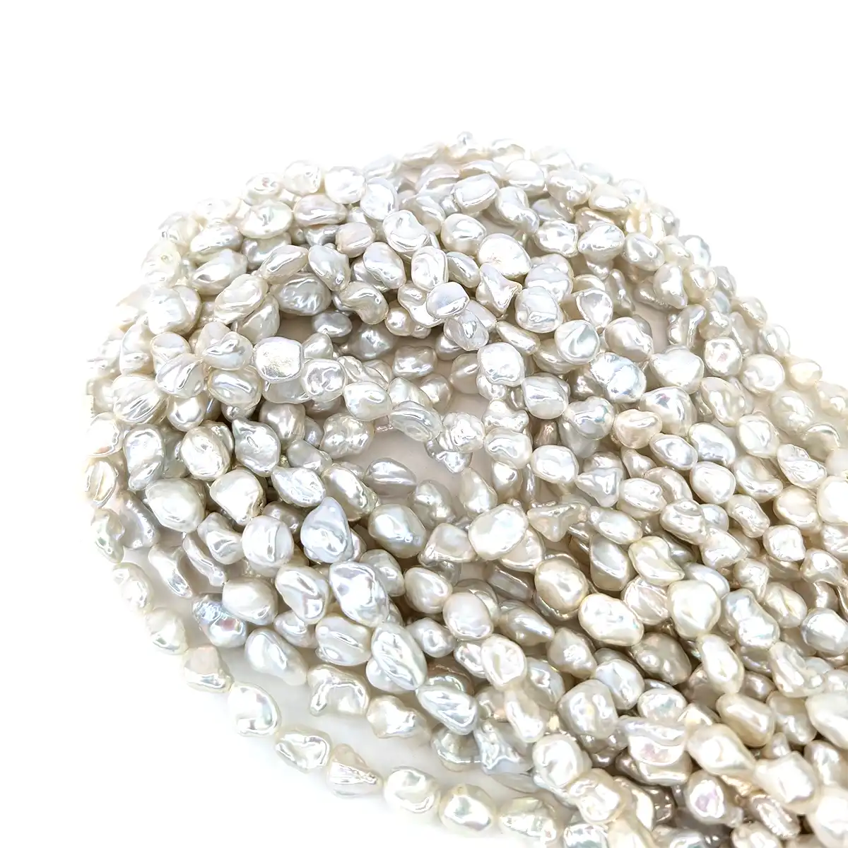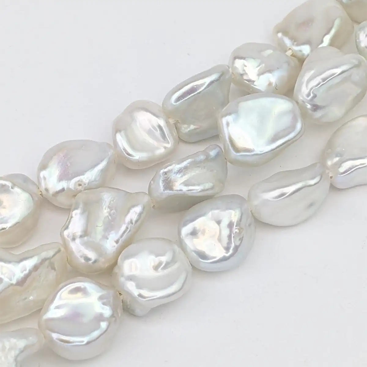 6mm Flattened Oval, Freshwater Pearl loose string, White