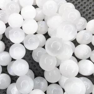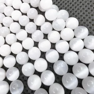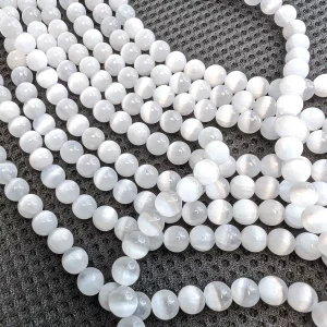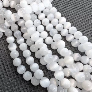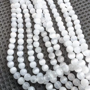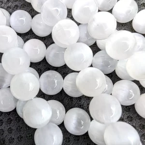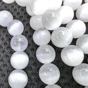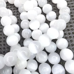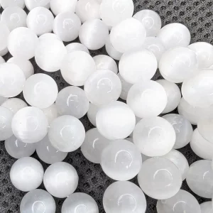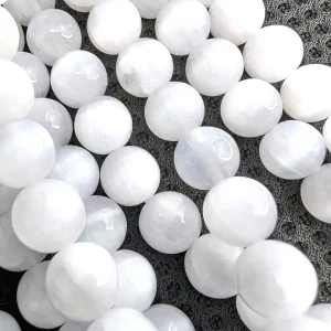 These natural selenite beads come in four sizes, 5, 7, 9 and 11mm (all sizes approximate).