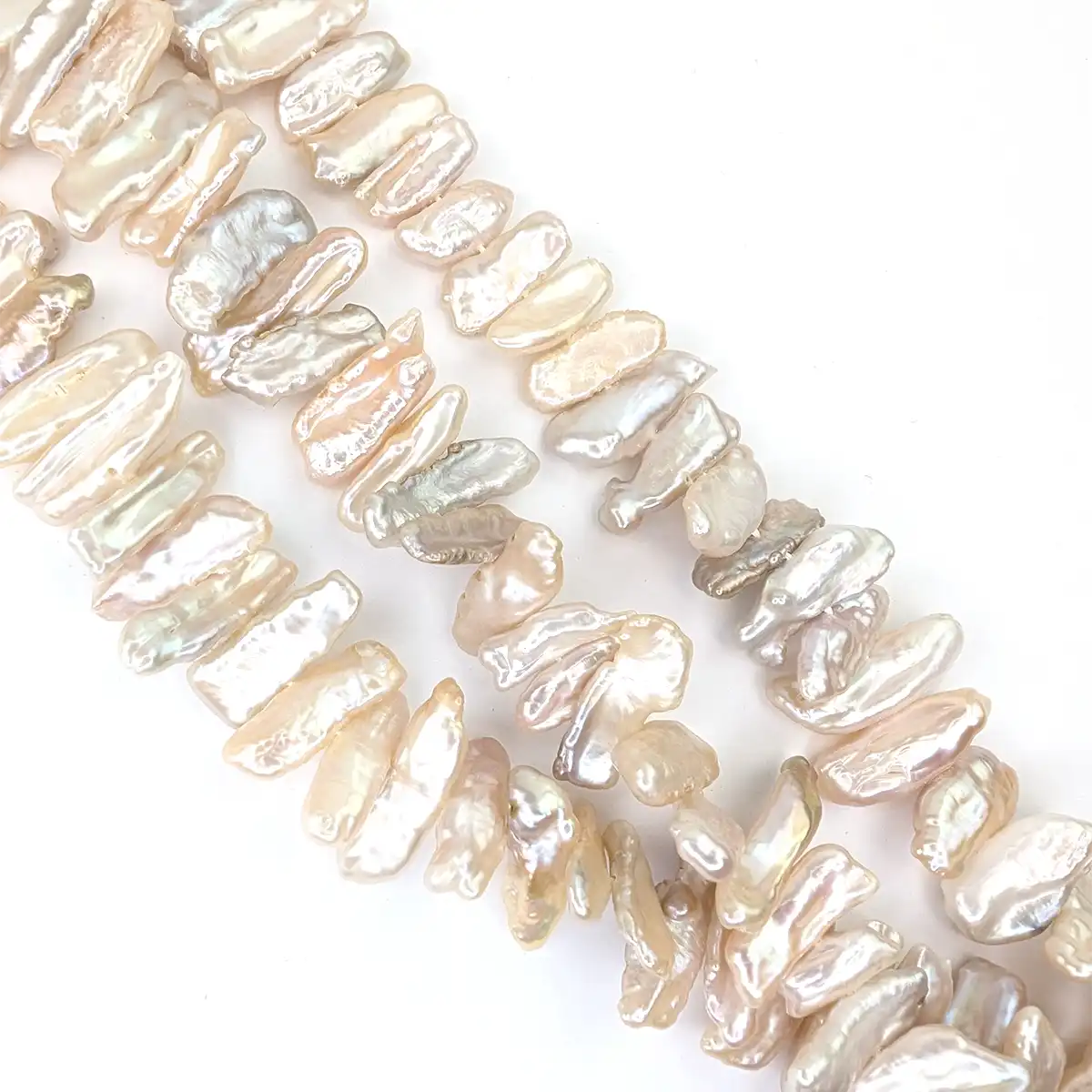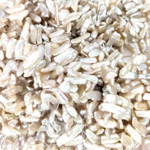 Side-drilled Biwa ‘Tooth’ pearls in a very light silvery-pinky-white with a superb lustre.