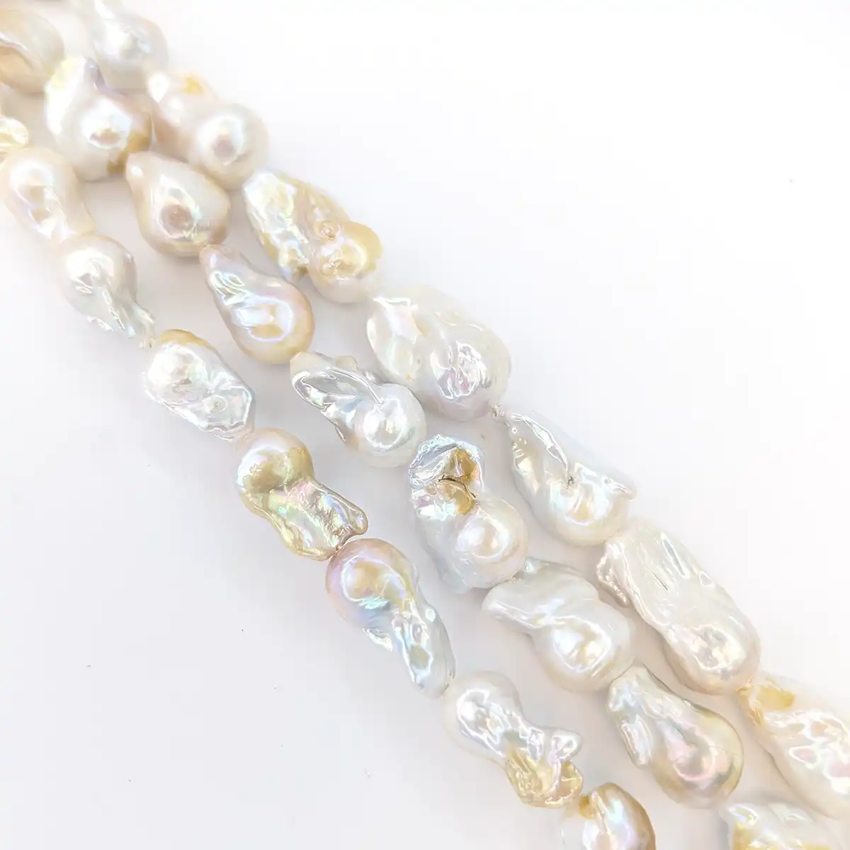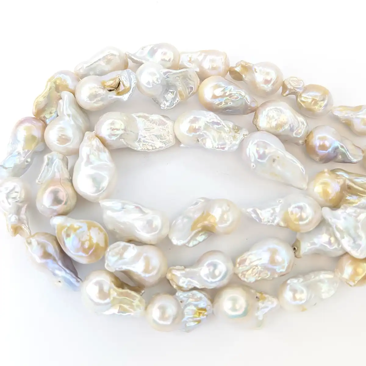 These lovely freshwater baroque small fireball pearls have a superb lustre.